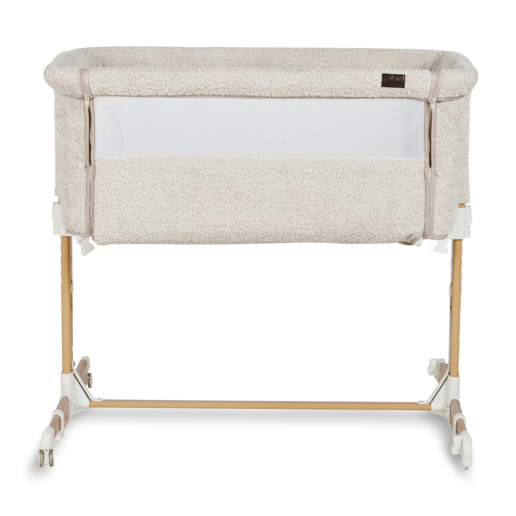 Co-sleeperinn er á hjólum gerir það auðvelt að færa vögguna, og viðarútlit á fótum gefur henni hlýtt og stílhreint yfirbragð.