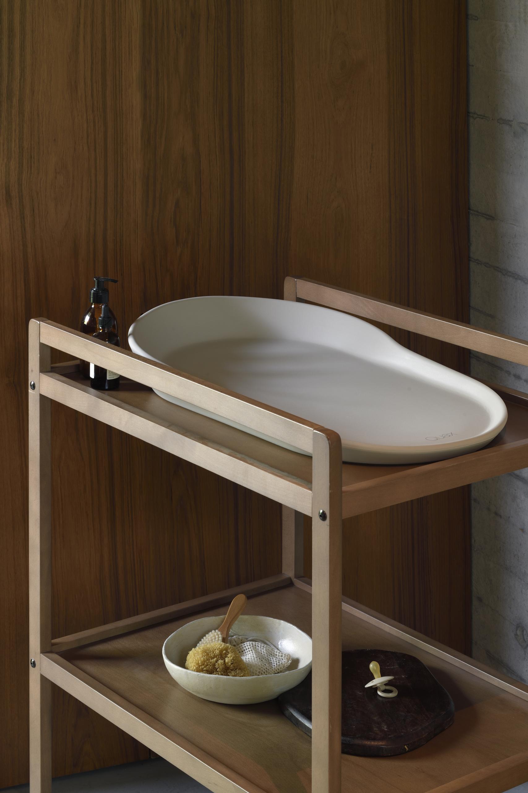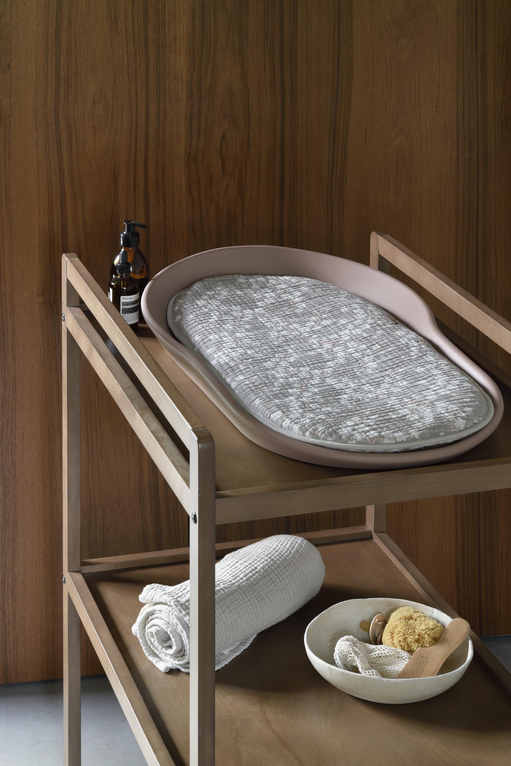 Hliðarnar eru upphækkaðar til að tryggja öryggi barnsins og botninn hannaður til að leyfa loftflæði og vernda yfirborðið undir.