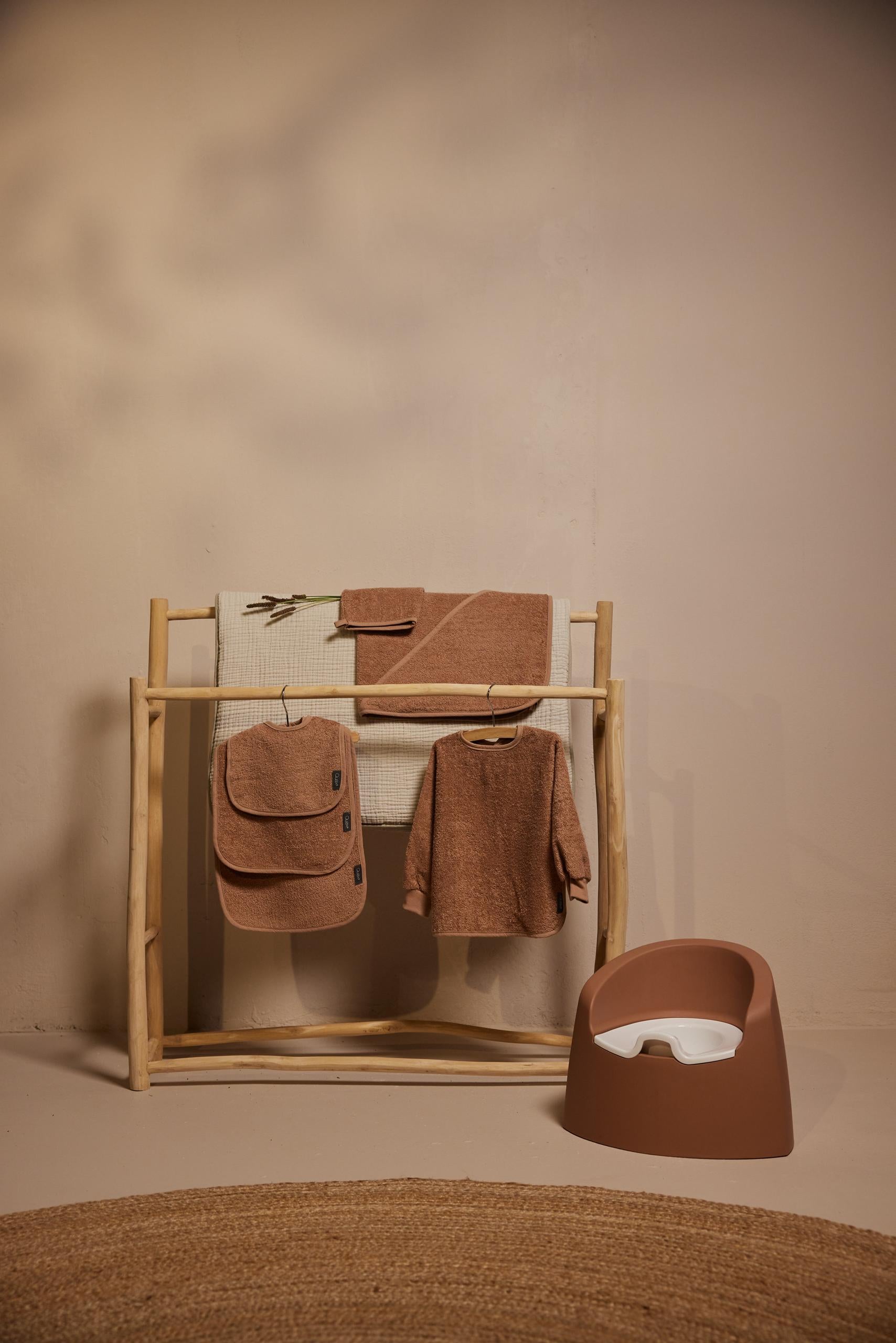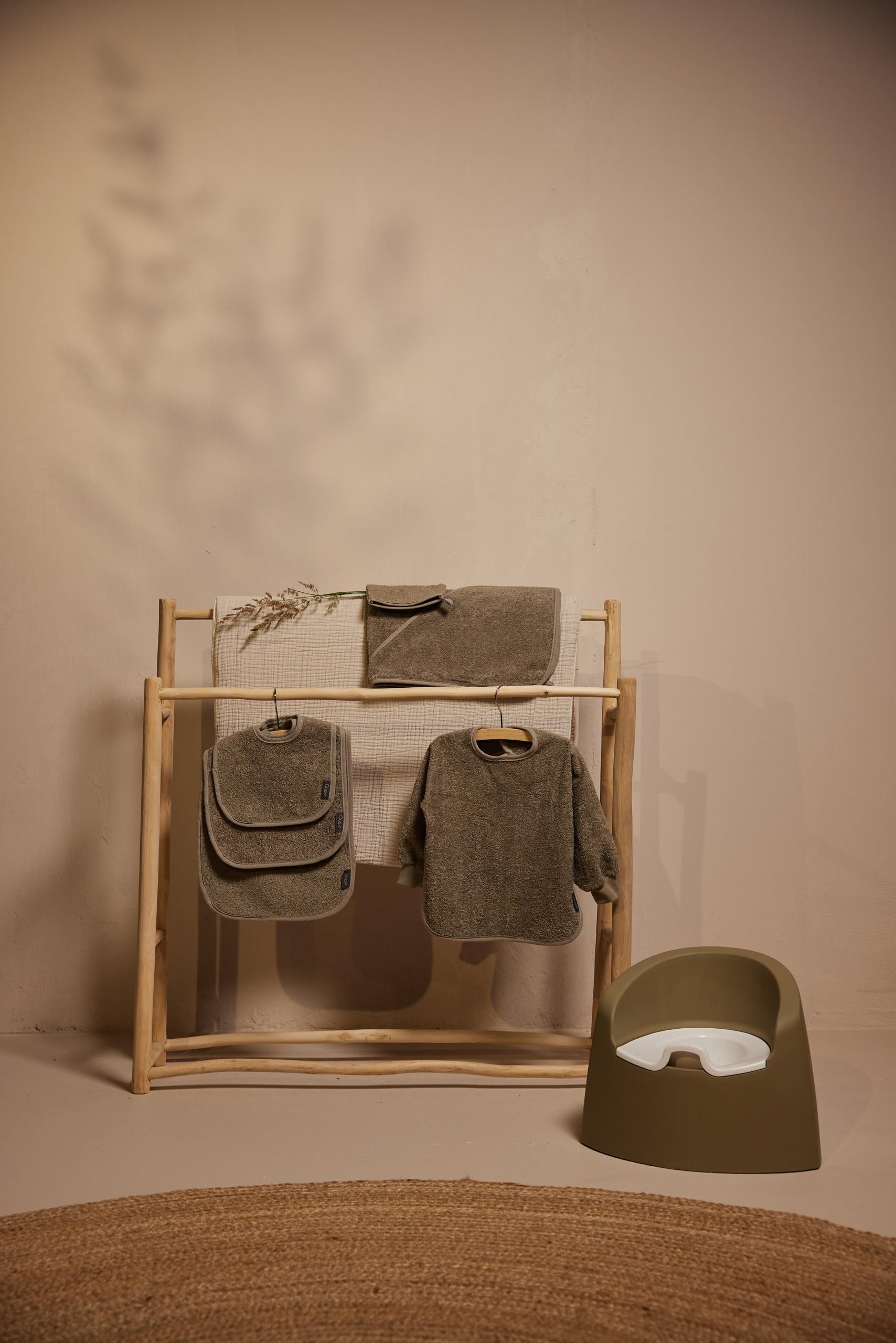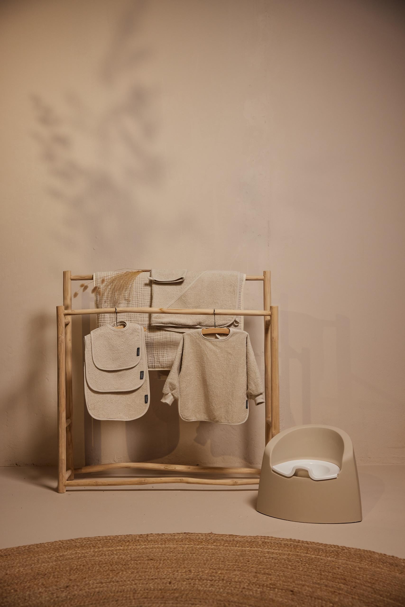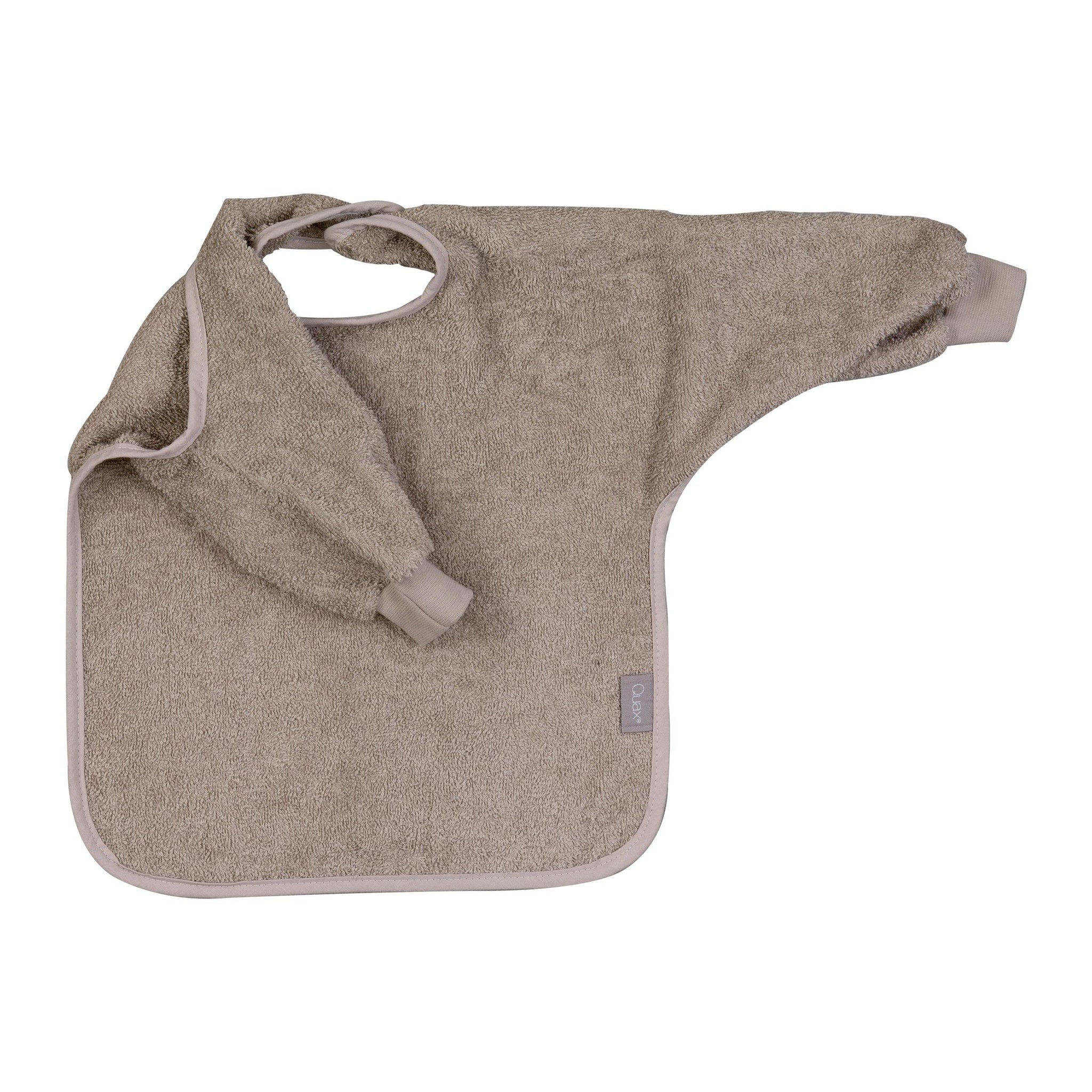 Hagnýtur og stílhreinn smekkur með ermum frá Quax, gerður úr 100% bómull sem tryggir þægindi og öryggi fyrir barnið við máltíðir eða leik.